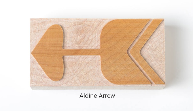 These arrows are derived from a number of sources. The patterns for curved arrows and classic arrow are part of the American Wood Type collection Bill and I purchased in 2010. The arrowhead is from the 1888 Wm. H. Page catalogue (p. 179). Victorian in spirit, the feather arrow is based on one I found in a Dover book. From the age of Art Deco, the sleek and deco arrows jumped from the page of a Dover book on the 1920s.